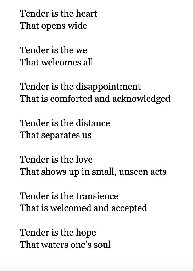 I have to notice the otherwise invisible tenderness that is all around us and share it generously with others.